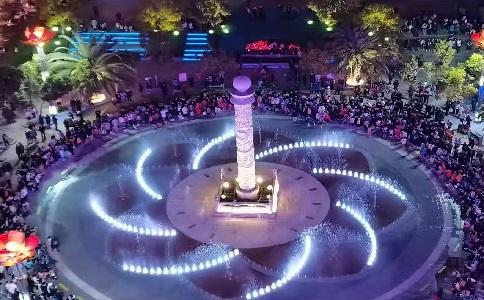 雙龍廣場的音樂噴泉隨著節(jié)奏婀娜綻放,音樂的旋律縈繞在光影中,帶來震撼而又夢幻的視覺沖擊